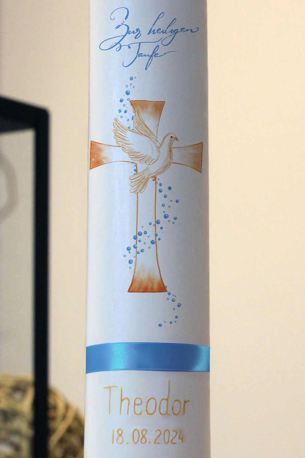 Aus technischen Gründen, können diese Druckdesigns nur auf breitere Kerzen ab 5cm Durchmesser gedruckt werden. Sie möchten eines dieser Motive auf eine traditionell schmale Taufkerze (40x3 cm) oder möchten ein individuelles Design von mir entworfen haben? Kontaktieren Sie mich um eine passende Lösung zu finden.